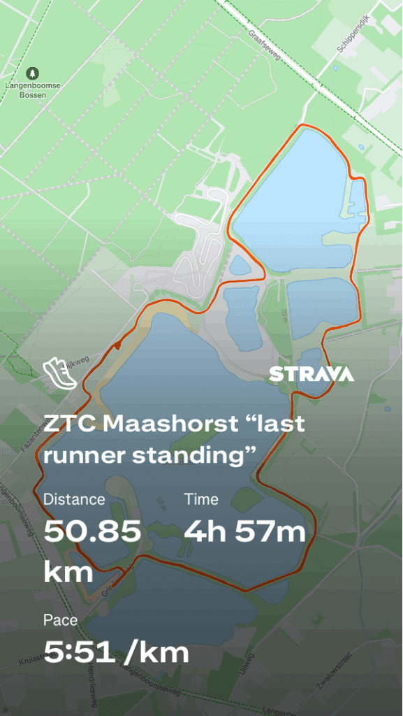 Ik had van tevoren bedacht dat ik rustig aan zou lopen. Uiteindelijk kwam ik inclusief de stops, en de inmiddels verplichte snoekduik (want waarom zou je je voeten ook gewoon optillen bij een boomwortel), uit op een gemiddeld tempo van 5:50 per kilometer, een goede langzame duurloop. Maar met of zonder val, het was een mooie route en een mooie dag. Met dank aan de organisatie en vrijwilligers voor de goede zorgen.
