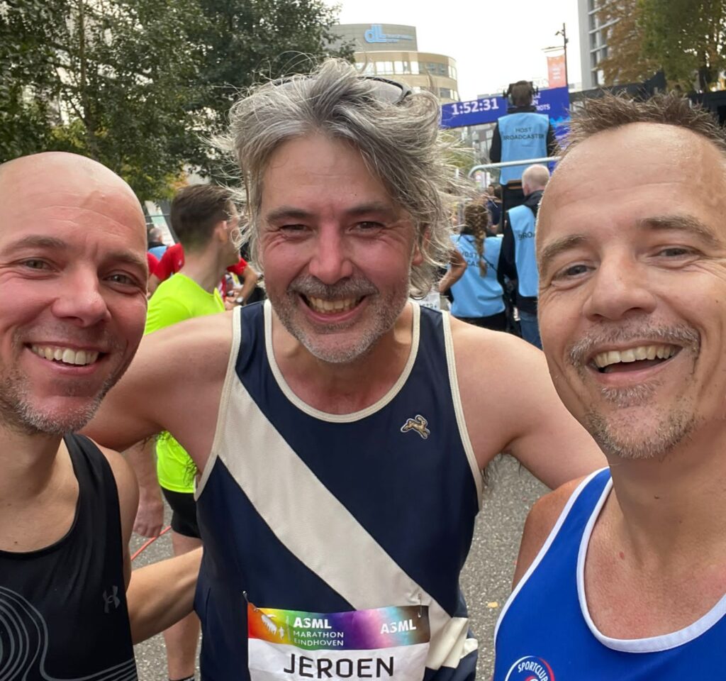 Na afloop wacht ik, zoals vaak bij dit soort evenementen, op Raymon bij de finish. Hij had een mooi gevecht tot op de laatste meter met Jeroen Grueter, dus we maken nog snel een selfie na de finish. Toch leuk als je een bekende tegenkomt bij een evenement zoals dit, terwijl je geen van allen uit Eindhoven komt. (Mocht je denken, die naam komt bekend voor. Dat klopt, Jeroen is commentator bij NOS Sport, maar voor ons de broer van een vriend, onze oude voetbal trainer, en voormalig dorpsgenoot.)